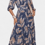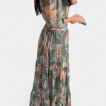 Aïsha Maxi-kjole udstråler tidsløs elegance gennem et let bladmønster og et snit, der smigrer naturligt. Den dybe V-udskæring, løse ærmer og en markant talje skaber en sofistikeret silhuet uden anstrengelse. Designet ærer en lang tradition for håndværk og omtanke i hvert snit, og den begrænsede produktion gør kjolen til en investering i tidløs kvalitet og en ægte samlergenstand i garderoben.